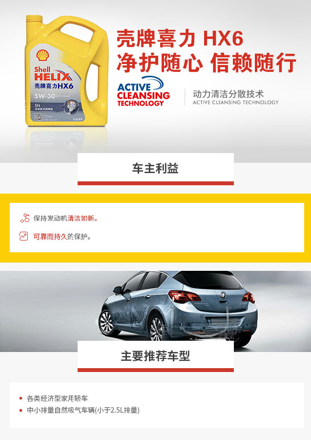 型號(hào):喜力HX6 4L 5W-30 SN 機(jī)油分類:半合成機(jī)油 機(jī)油級(jí)別:SN 容量:4L