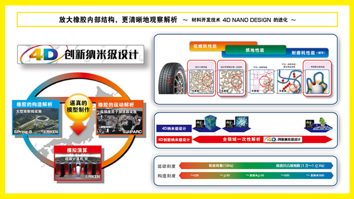 回顧?quán)嚨撈盏钠放瓢l(fā)展歷程,技術(shù)創(chuàng)新是出現(xiàn)頻率最高的關(guān)鍵詞。鄧祿普技術(shù)團(tuán)隊(duì)持續(xù)探索尖端科技,最新開發(fā)“4D創(chuàng)新納米級設(shè)計(jì)”技術(shù)運(yùn)用大型放射光設(shè)備“Spring-8”、高強(qiáng)度質(zhì)子加速器“J-PARC”和超級計(jì)算機(jī)“京”,從納米級微觀領(lǐng)域真實(shí)再現(xiàn)橡膠分子結(jié)構(gòu)及運(yùn)動形態(tài),使原材料的開發(fā)精度和效率實(shí)現(xiàn)了質(zhì)的飛躍,全面提升了輪胎產(chǎn)品的低油耗性能、抓地力性能和耐磨耗性能。